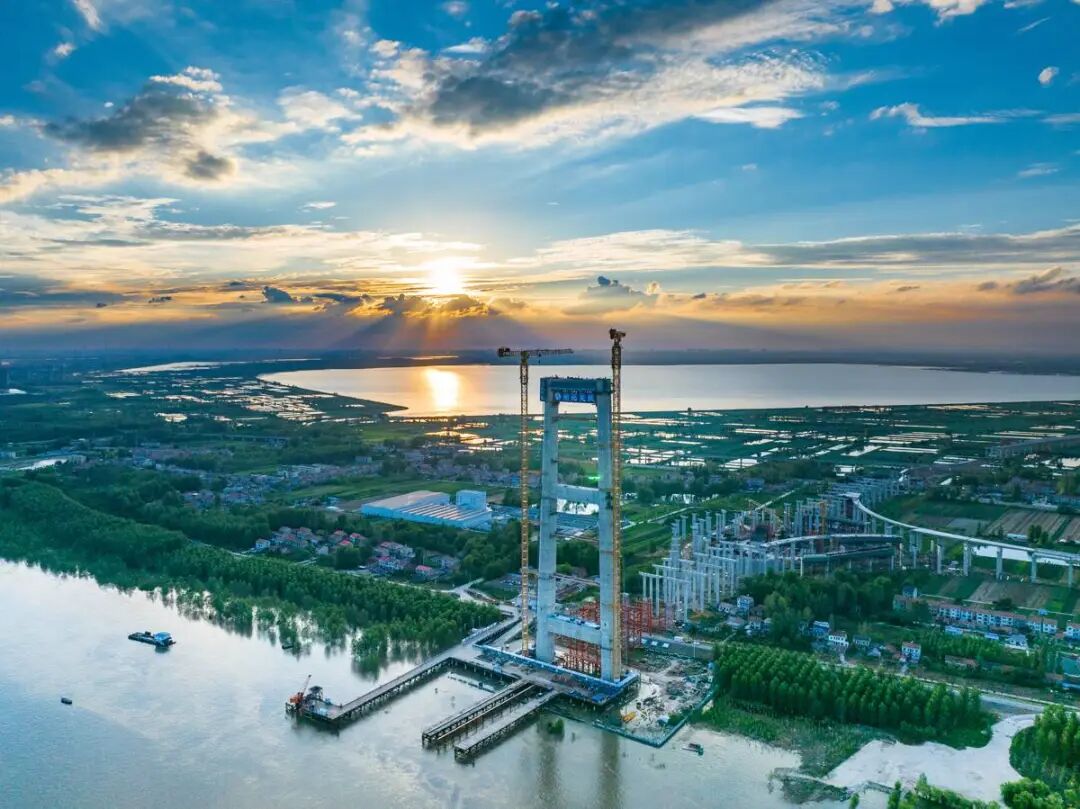 夕阳里的双柳桥长江大桥(通讯员杨鑫摄)