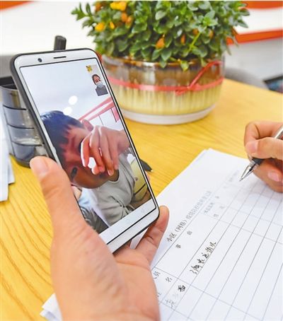 2月14日,在江西省赣州市会昌县贡江社区党群服务中心,工作人员通过视频对话了解居家观察者身心状况。 |