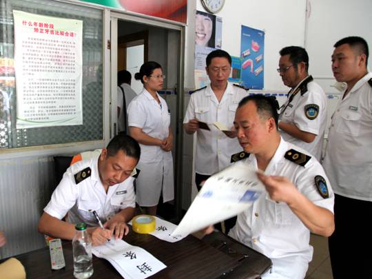 7月17日,在市卫计委卫生监督所派员指导下,区卫计委联合区检察院侦监科、区公安分局阳逻派出所,针对阳逻地区学校周边黑诊所、屡打不绝的非法行医“钉子户”进行集中打击,拉开了全区公共场所暑期专项整治行动序幕。
