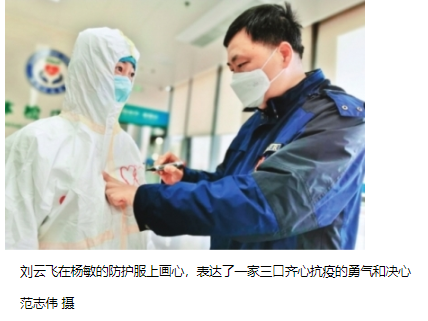 街道干部在医院偶遇50天没回家的医护妻子 他在妻子防护服上画上“心连心”