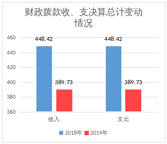 2019年度收入总计519.48万元、支出总计519.48万元 万元。与2018年相比,收入总计减少441.92万元、下降45.97%,支出总计减少312.17万元,下降37.54%,主要原因是工会经费开支独立核算,未纳入财政决算公开范围。