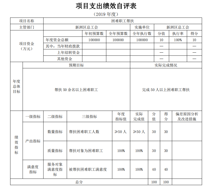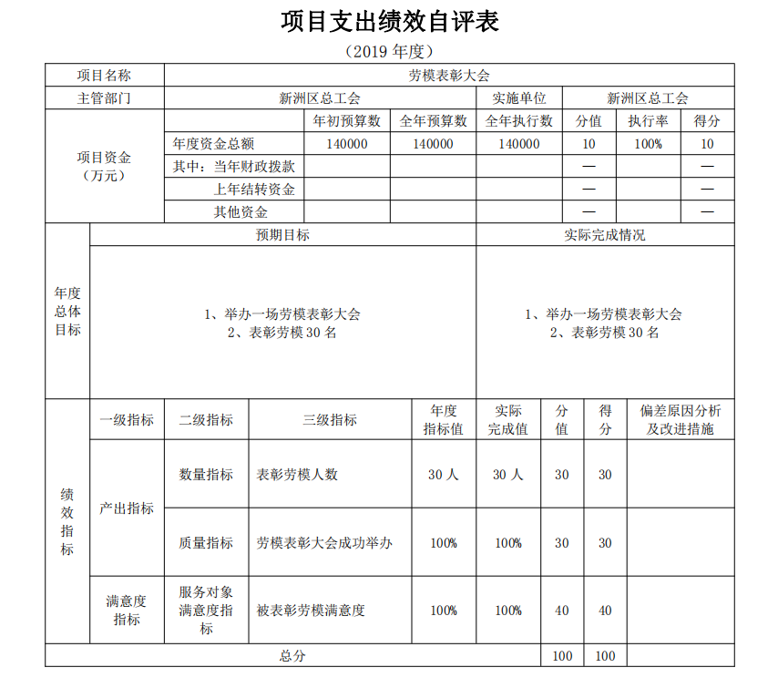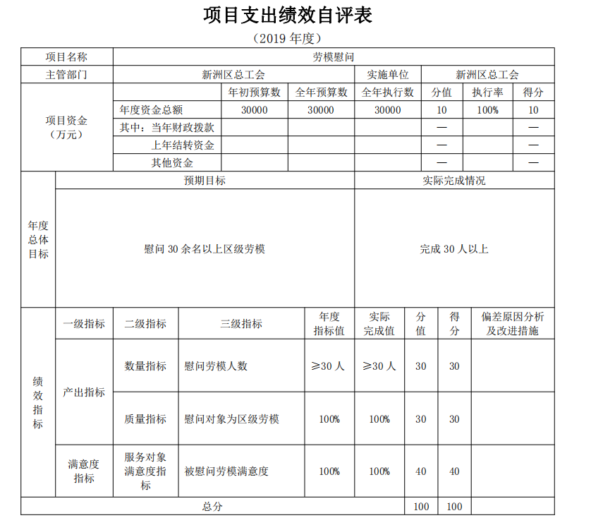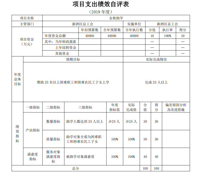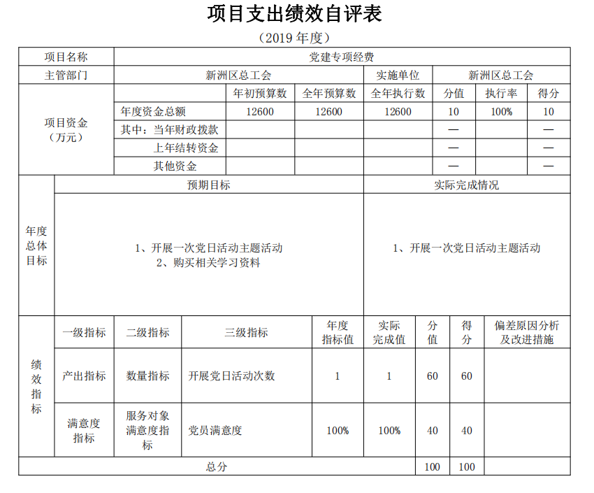 2019年项目支出绩效自评表